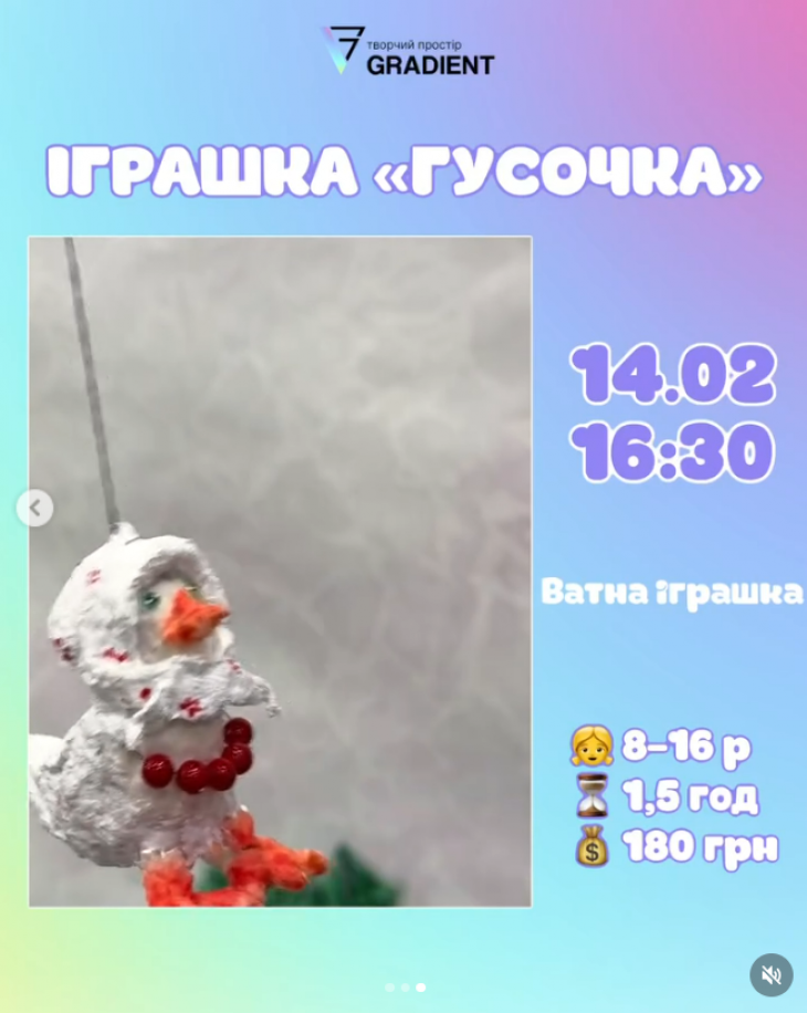 - 16:30 — Іграшка «Гусочка» (ватна іграшка)