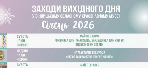 Вінницький обласний краєзнавчий музей анонсував заходи вихідного дня на січень