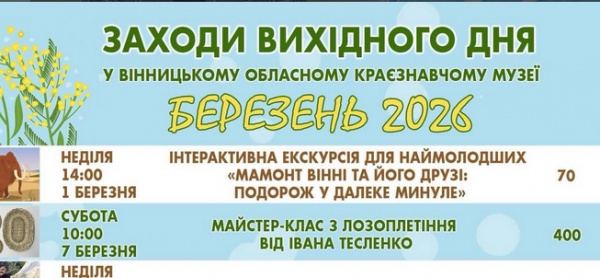 Вінницький обласний краєзнавчий музей анонсував заходи вихідного дня на березень
