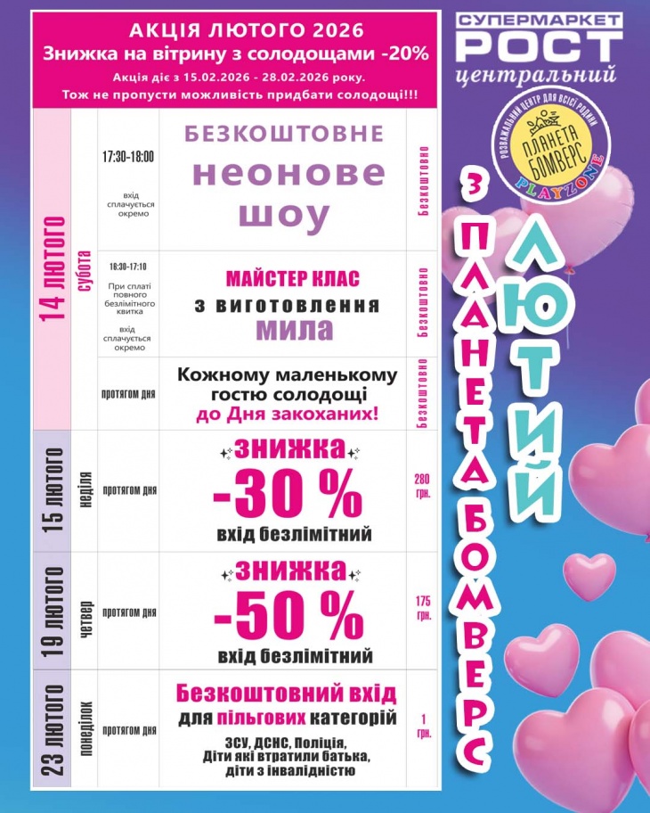 Зберігайте собі програму активностей у «Планеті БОМВЕРС» на лютий!
